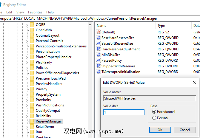 是否要重新打开Windows 10预留存储?回到与上一节相同的注册表项DWORD,将值设置为 1 ,然后单击OK。