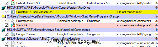 如果该程序以黄色或粉红色突出显示,请对此表示怀疑。不要开始立即删除条目,因为指示可能不正确。但是,如果不确定程序的必要性,请使用“自动运行"的右键单击选项对程序进行故障排除。