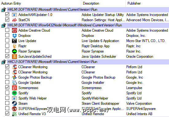 从首先,“自动运行"会列出计算机上运行的每个程序。没有说明这些程序是必要的,不必要的还是彻头彻尾的恶意程序;由您决定。但是,“自动运行"标签列表会极大地帮助您准确地了解哪些可执行程序可以执行哪些操作。