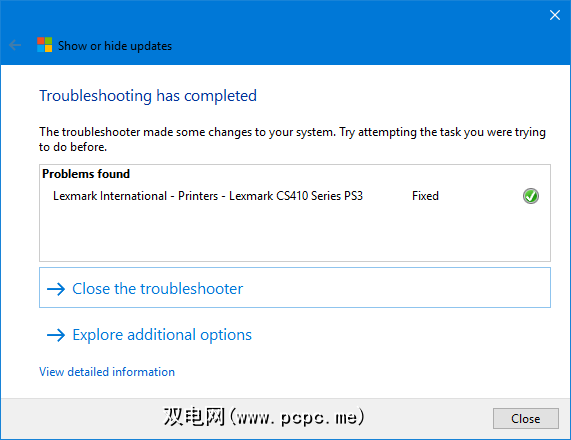 问题排查工具将发挥其魔力,您最终将看到确认已解决问题的确认。