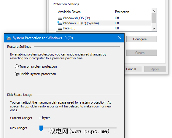 返回上一个窗口,现在您可以手动创建…您的第一个还原点。现在,只要您的系统进行了更改(包括安装安全性和功能更新),Windows便会创建新的还原点。
