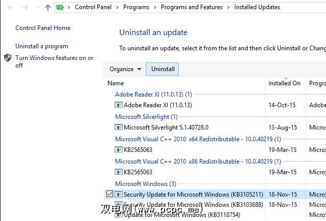 不建议使用通过控制面板卸载更新的选项。虽然您仍会在设置>更新和安全性> Windows Update>高级选项>选择更新卸载更新时查看该更新历史记录,该选项将打开。在“控制面板"窗口中,列表将变为空白,即使选择更新后,您也找不到卸载按钮。