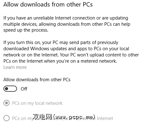 Windows Update Delivery Optimization(WUDO)下的设置可让Windows授予从其他PC下载更新的权限。可以在Internet上的任何位置(保留Microsoft服务器的容量)或在本地网络上使用。第一种选择可能会被滥用以引入更改的更新。但是,如果将下载限制为本地网络中的设备,则可以减轻您自己的Internet带宽上的负载。