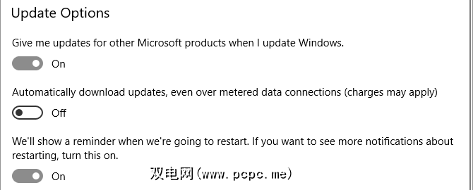 您还可以启用 Windows Update来自动下载更新,甚至通过计量数据连接。不过,我们建议您保持此设置为关闭。