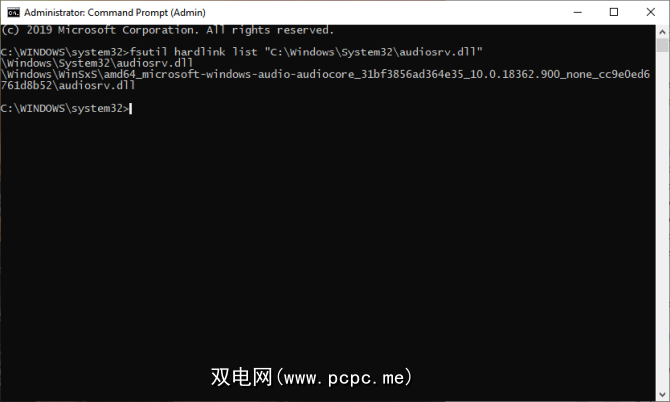 fsutil hardlink list [system file path],例如,如果我要检查系统文件“ audiosrv.dll",然后键入