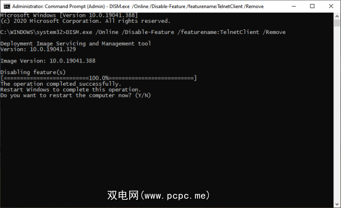 DISM.exe /Online /Disable-Feature /featurename:NAME /Remove(用列表中提到的功能名称替换“ NAME")