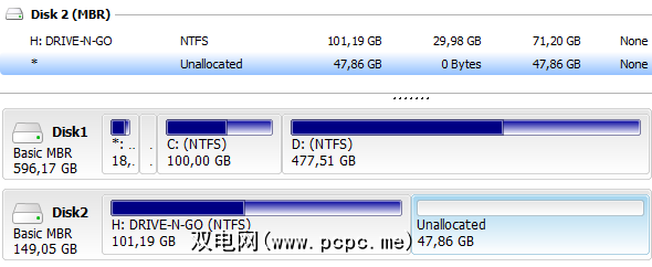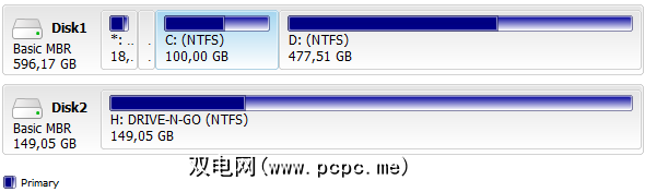 在驱动器列表下方,您将看到磁盘映射,其中显示了一个每个磁盘分区的图形概述。