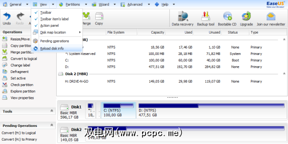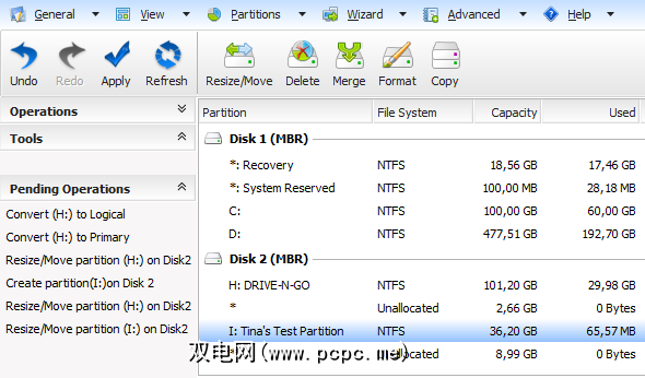 现在,如果您自己尝试过此操作,则可能已经注意到所有这些操作都非常快。 EaseUS Partition Master确实在几毫秒内创建了一个新分区。不,不是。没有任何操作是立即的。它们都停在了左下角的“待处理操作"中。