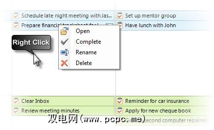 在一个压倒性的长线性列表中,要花几分钟的时间,这里要花几秒钟。右键单击任何任务都会提供一些标准选项,如下面的屏幕快照所示: