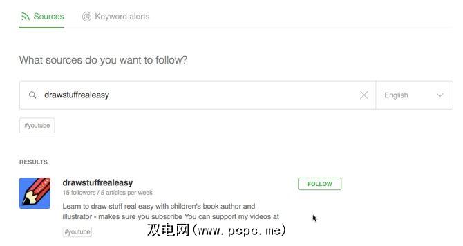 1。使用Feedly的搜索框。在Feedly的搜索中输入YouTube频道的名称。跟随结果中出现的通道。