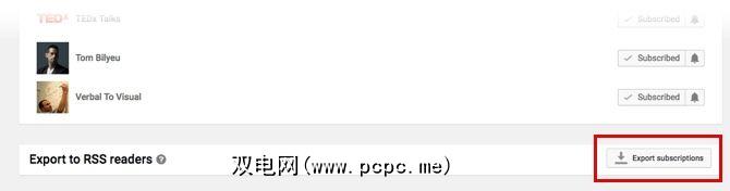 2。将YouTube的OPML文件导入Feedly。 YouTube为您所有的订阅频道提供了OPML文件。转到您YouTube帐户的“订阅管理器"页面,然后点击导出订阅按钮以下载OPML文件。