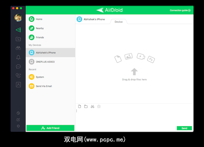 如果您不喜欢在USB电缆上乱逛,则可以使用AirDrop远程传输文件。首先,请在您的Android设备和台式机上下载AirDroid。注册免费帐户后,您可以轻松地将文件传输到附近的设备和其他注册的设备。即使设备未连接到同一Wi-Fi网络,您也可以远程传输文件。