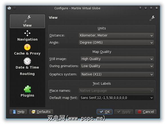 Under Settings –> Configure Marble Virtual Globe you’ll find a couple of other useful features that you may need to configure. Here you’ll find settings for your units, time, graphics and image quality, routing, and more. Although not essentially necessary, it is worth going through the options to have the best experience possible.