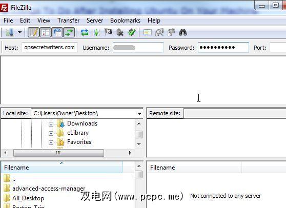 对于大多数标准FTP帐户,您实际上不必弄乱端口设置,因为您将连接到标准FTP端口21,FileZilla默认将其设置为21。您执行“ QuickConnect"。只需输入远程FTP地址,您的用户名和密码,然后单击“ QuickConnect"。