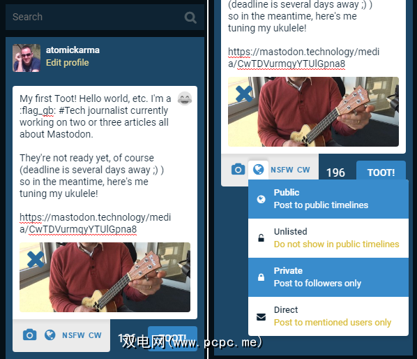 球形按钮,标记为调整状态隐私是Mastodon体验中最重要的元素之一。可以为每个Toot设置一个隐私级别: