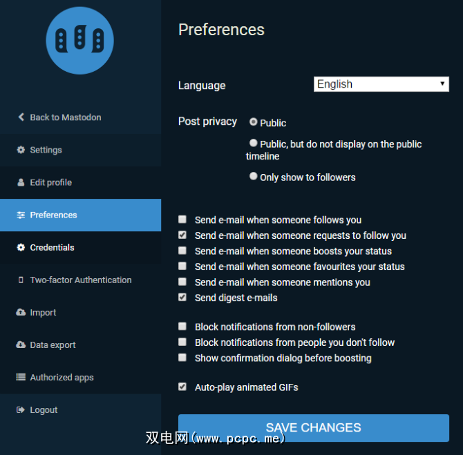 This focus on privacy and safety is further enhanced via the Settings > Preferences screen. Here, you can specify a default post privacy setting and configure notifications. For instance, if you want to block notifications about activity by non-followers, you can check the corresponding box and click Save Changes.