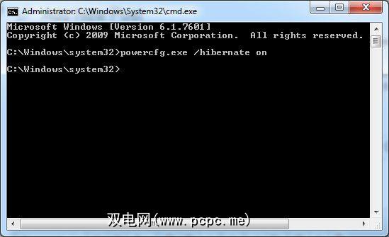 在命令提示符下,键入powercfg.exe / hibernate on并按Enter(注意“ .exe"和“ / hibernate"之间的空格)。