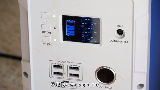 有三个电源按钮,交流和直流输出。按住相关按钮几秒钟可激活输出。小显示屏显示当前电池电量(通过五段估算),以及输入,交流和直流输出功率的确切数字。