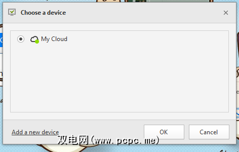 然后,您会看到选择设备提示符,该提示符使您可以直接推送此内容到您拥有的任何其他设备(假设已连接Maxthon)。如您在上面的屏幕截图中所见,我没有通过Maxthon连接任何其他设备,但是您仍然可以将内容推送到云存储中。
