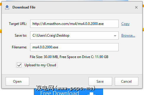 另一个非常有用的功能是 Cloud Download 。当提示您通过Maxthon浏览器下载任何文件时,您可以勾选一个框,该框还会将下载的文件直接发送到您的云。