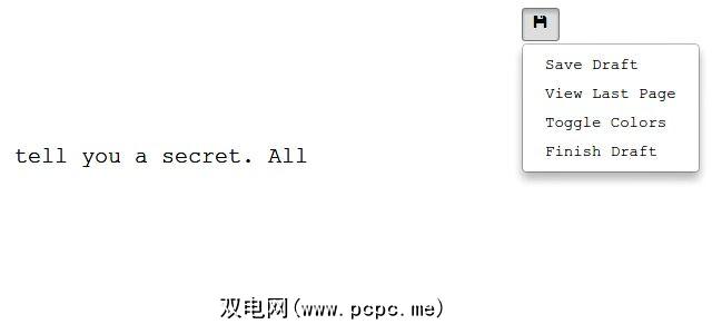 ilys在13项基于浏览器的Joel帖子中发现了一个简单的编辑锁定工具作家的工具。打开Web应用程序时,它会询问您目标字数。进行设置,然后在出现的框中开始书写。有趣的是,在书写模式下,您的文本一次只显示一个字符,一开始需要一点时间来习惯。