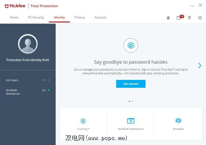 在底部,您会找到指向True Key和WebAdvisor的链接。还有一个 Shredder 功能,可让您永久删除文件,使它们无法恢复。