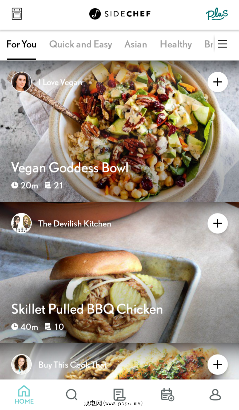 Sidechef是膳食计划者和食谱应用程序之间的交叉。注册时,您必须在几个偏好设置之间进行选择,例如您遵循的饮食习惯,不喜欢的成分等等。然后,该应用程序将向您显示基于该食谱的列表。