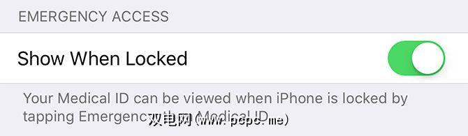 重要提示:为了使您的Medical ID有用,您需要在此屏幕上启用锁定时显示选项。这将使其他人无需先解锁iPhone即可访问该功能。