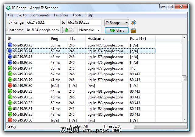 图片来源:Angry IP Scanner Windows 7 / Vista,通过AngryIP Scanner