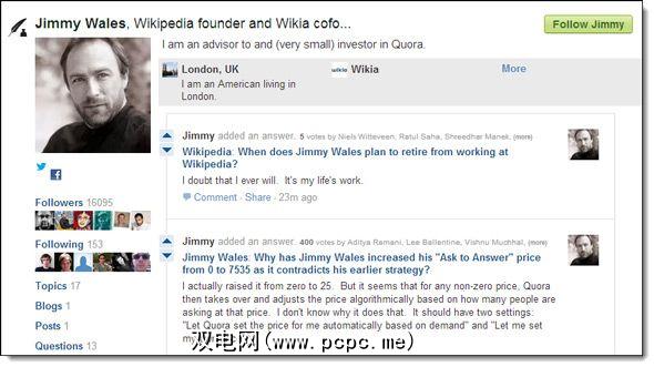 尽管程度不高,但您可以找到问答网站Quora上的一些名人。我发现了斯蒂芬·弗莱(Stephen Fry),JJ艾布拉姆斯(JJ Abrams)(虽然不是最近),马克·扎克伯格(Mark Zuckerberg)和吉米·威尔士(Jimmy Wales)之类的人。但是正如一个读者问的那样:“为什么马克·扎克伯格没有在Quora上回答关于他的任何问题?",一些个性人物可能会遇到麻烦。