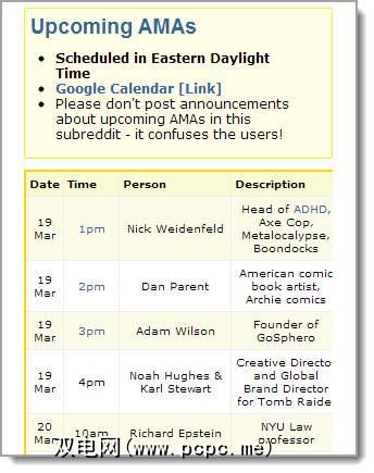 您可以轻松地跟踪来自Reddit右侧边栏的即将发布的IAmA。您将看到一个排定的本月即将到来的AMA表格,其中包括来自各行各业的一些有趣的成就者。