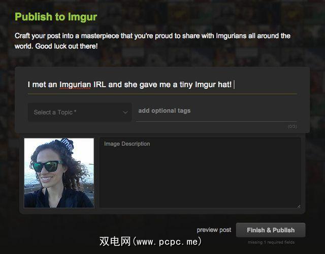 有一些出色的工具可以加快Imgur的上载速度,但是您将要使用新的本机发布机制。界面比以往任何时候都更简单,提示您选择一个主题,如果需要,可以添加额外的标签,并提供简短的说明-上传过程中所有可用的标签。