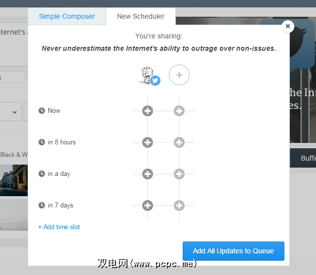Buffer在浏览器和出色的移动应用程序中使用扩展程序。一旦Pablo获得了相同的功能(即将投入使用),它将非常方便。现在,您似乎偶尔会用到某种东西,而不像Buffer本身那样经常使用。