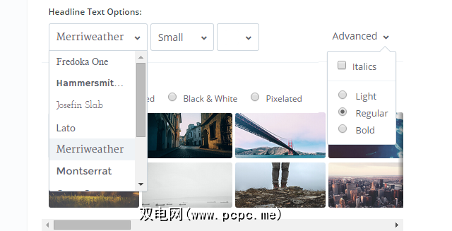 当然,有一些选项可以对其进行更多自定义。您可以选择几种字体并更改其格式或大小,可以使背景图像显得模糊,像素化或黑白,还可以添加第二行或图标。