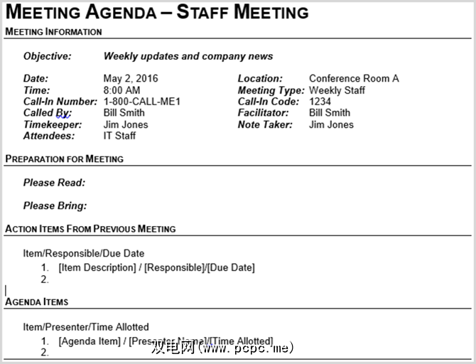 创建议程的最佳方法是从模板开始。这不仅可以节省您的时间,而且已经包含了所需的轮廓。这只是会议议程模板的一些选项,您可以签出Microsoft Word。它们足够灵活,适合任何会议类型或大小。