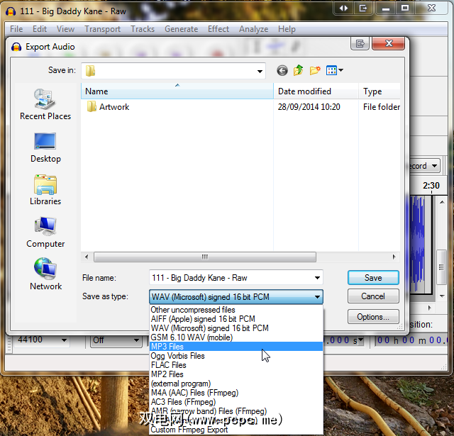 下载并安装Audacity之后,请打开它。转到文件>导入>音频,然后找到要转换的音轨。导入后,直接回到文件>导出音频。现在,您将看到一个对话框,询问您要将转换后的音频文件保存在何处。在此处调整文件类型将更改您的最终音频类型。