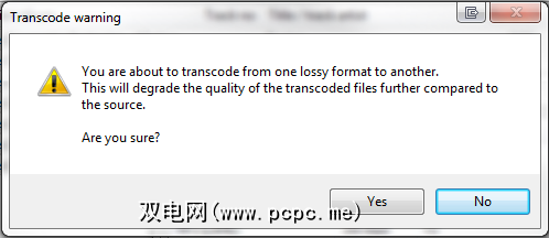 尽管从一种有损格式编码为另一种有损格式时出现了前面提到的问题,但我们继续将其从MP3转换为AAC,只是为了好玩-您可以看到警告Foobar加注。单击过去,然后继续。您的文件将迅速转换到您选择的目标文件夹中。