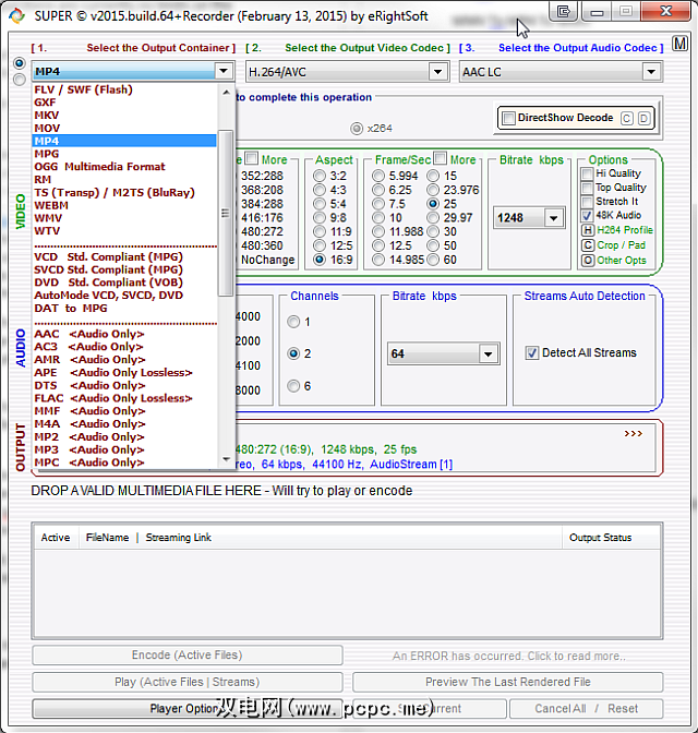 这就是说,SUPER格式的巨大范围使恐怖的安装值得一试–保持下降并阅读所有内容,直到您了解另一面。 SUPER实际上是用于FFmpeg,MEncoder,MPlayer,x264,MusePack,Monkey的音频,Short音频,TAK音频,True音频,WavPack,libavcodec库和theora / vorbis RealProducer插件的GUI程序包。将所有内容打包到一个安装程序包中,您可以看到对软件的转换吸引力–但非常认真的是,在单击安装之前,请考虑计算机的运行状况。