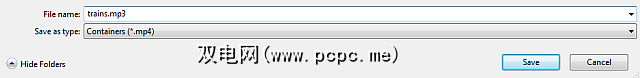 单击添加并浏览到您的MP4文件,然后继续进行转换/保存。现在,您需要指定目标文件。这一点非常重要,因为它会改变最终的文件类型。将另存为类型更改为全部。输入所需的文件名,然后输入.mp3,.ogg或.flac。检查图像是否需要帮助-我的最终文件名为 trains.mp3 。准备就绪后,点击保存。