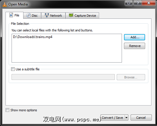 VLC是一款功能极为丰富的工具,不仅适用于各种受支持的视频格式,但也适用于其转换工具。打开VLC。转到媒体>转换/保存。这是您应该看到的对话框: