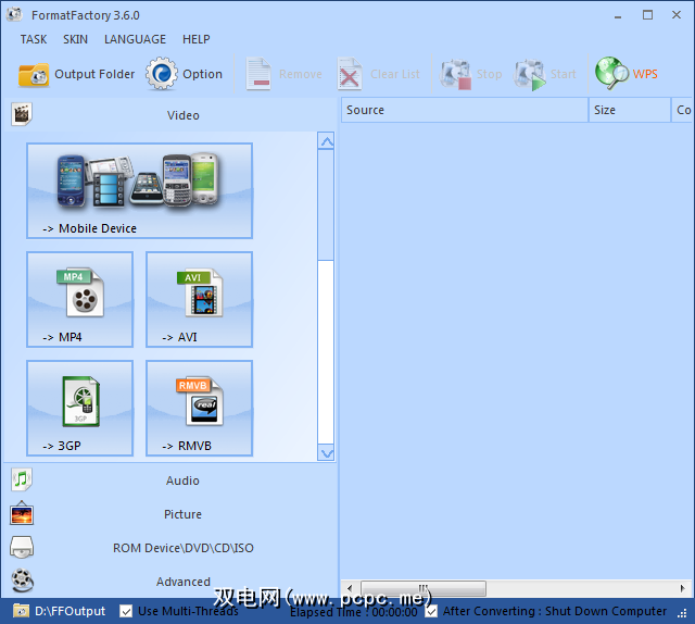 Format Factory是另一个出色的多合一转换器。您会发现它支持所有主要的音频,视频和图像格式,以及CD,DVD,ISO和CSO的刻录功能。