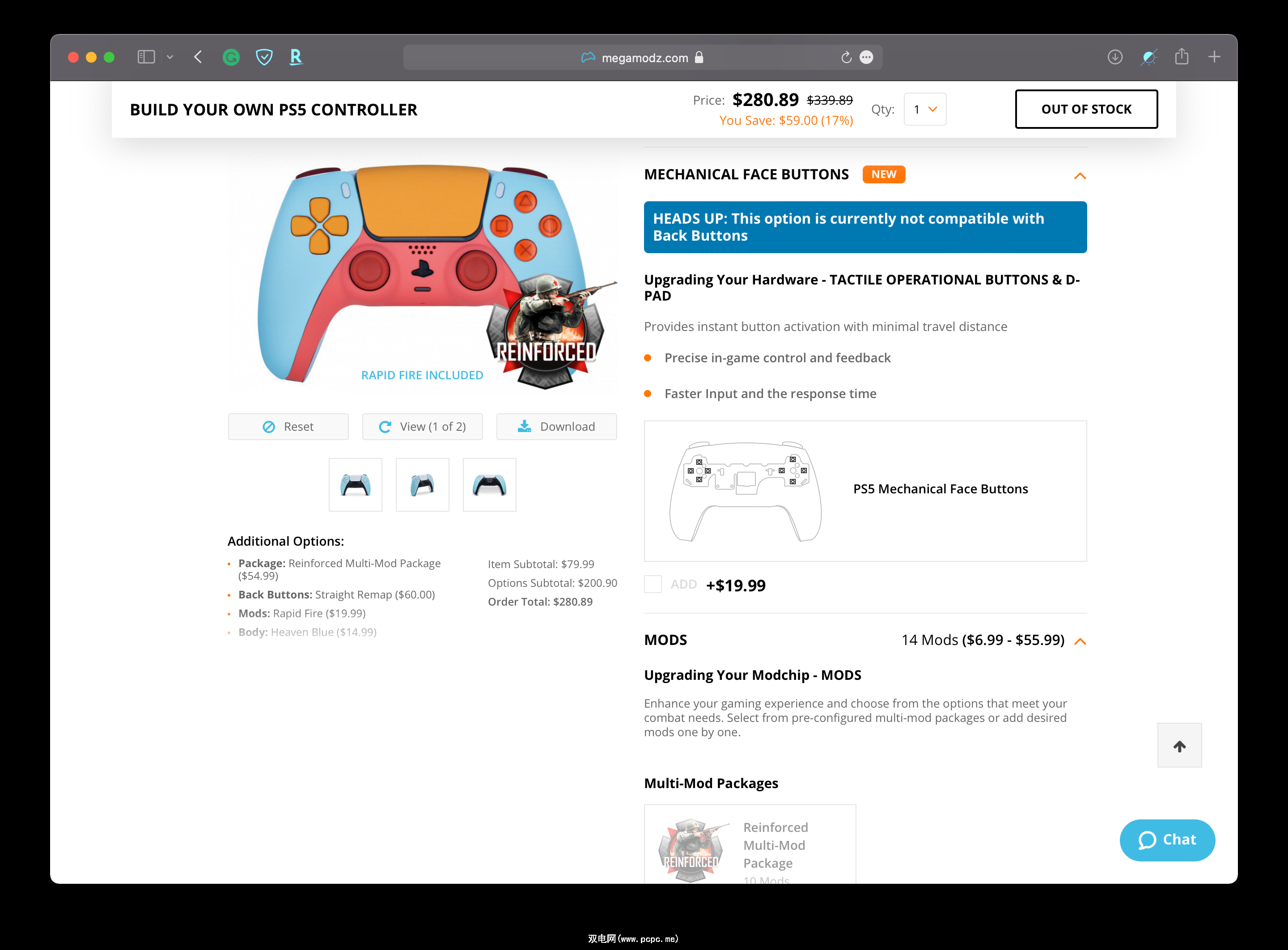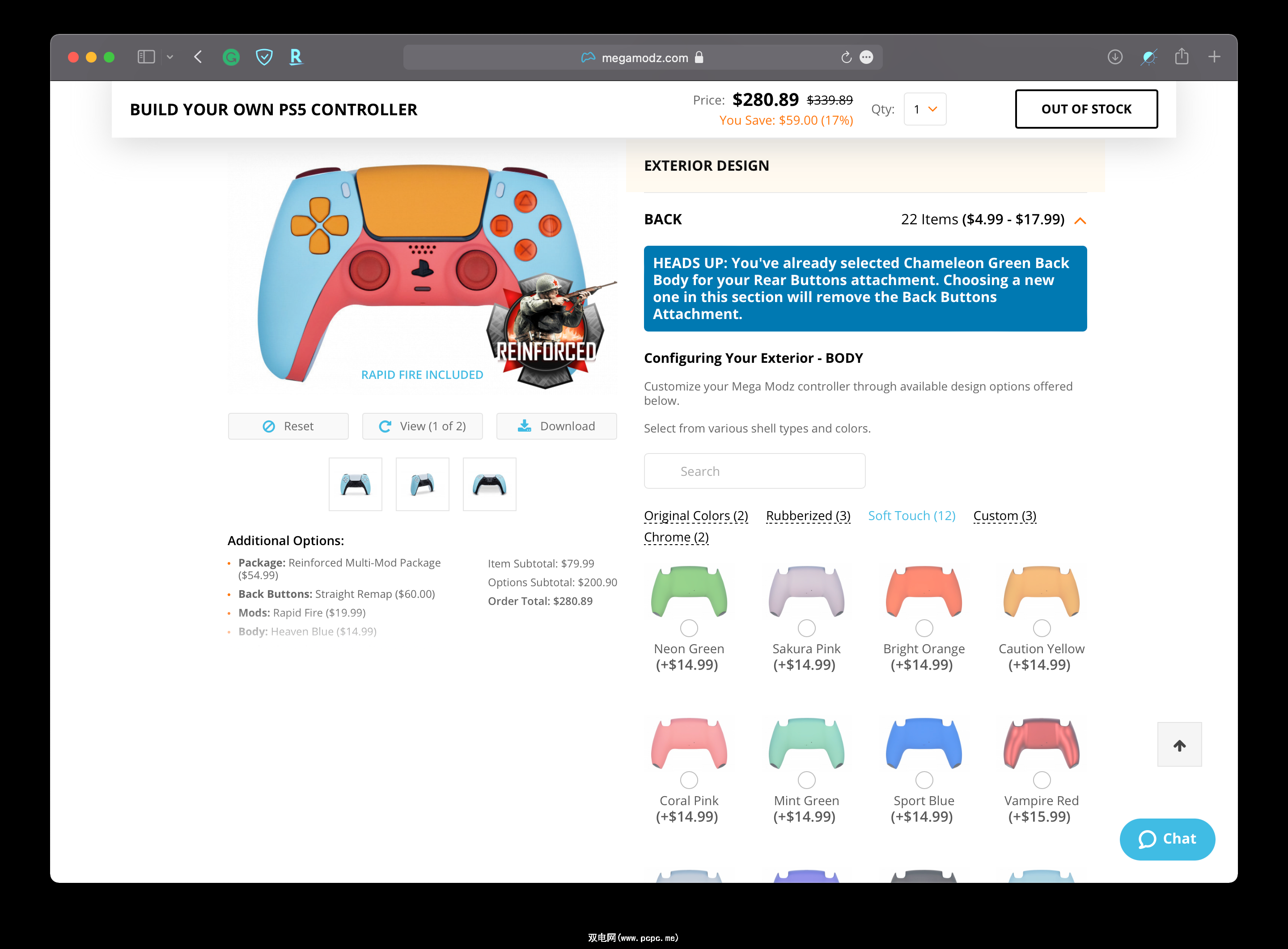 MegaModz 提供了一个强大的定制过程,用于使用可选的宏背板和模组制作您自己的设计,这可以有效地为您提供优势。满载后,这些定制控制器的成本几乎是原始 PS5 控制器的三倍。所有这些选择和很棒的设计选择都值得吗?我们是这样认为的。