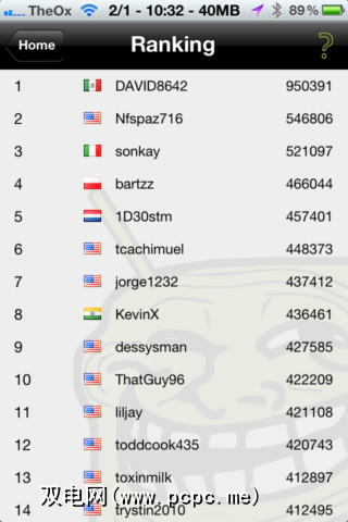 应用程序中的“排名"部分可让您查看该应用程序的主要用户。看到一些用户的分数是相当可观的。有些人会花很多时间……。而这就是我要说的。