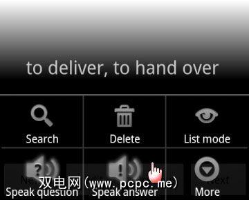 学习屏幕非常简单,其中包含一个问题区域和一个答案区域,并带有分隔符在两者之间。调出答案(或否)后,您可以触摸答案区域以显示答案。您可以使用屏幕底部的按钮对自己进行评分。