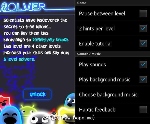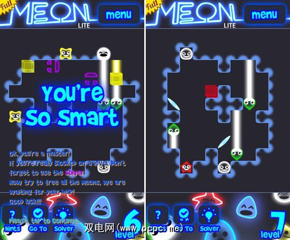 Meon提供了免费的Lite版本和付费的Full版本。精简版限制为31个级别,而完整版游戏则多达120个级别。只需0.99美元即可获得完整版。您还可以购买“求解器",这是一次使用的物品,可以在您遇到问题时为您解决问题。