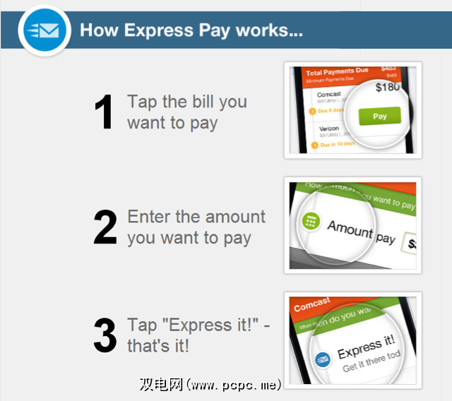 类似于网站,主屏幕提供了您财务状况的原始资产负债表。您可以仔细查看帐单并选择立即付款或安排将来的付款。