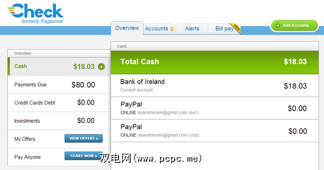 Check提供了更为简化的资金视图,但在支持Mint上却要胜过Mint。集成非严格财务帐户(例如Gmail和EBay)的功能可简化在线购买或查看收据时的工作流程。
