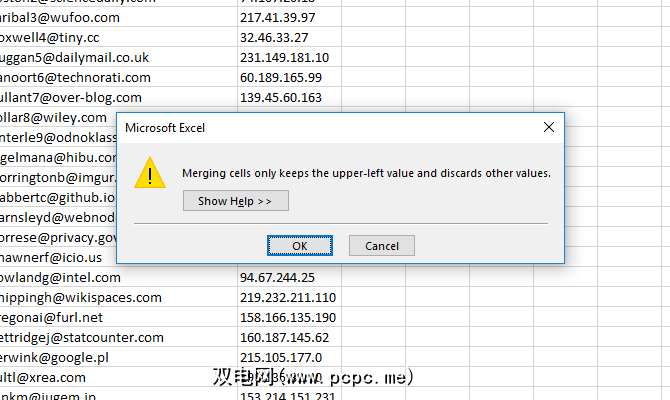 如果要继续,只需按确定。然后,您将具有合并的单元格,如下面的屏幕截图所示。就是这样。