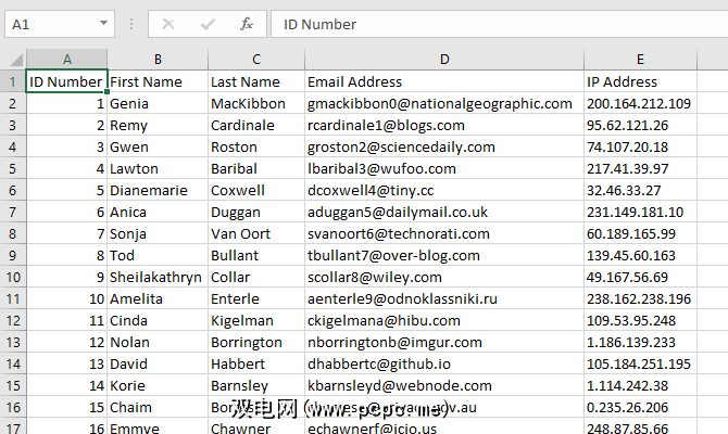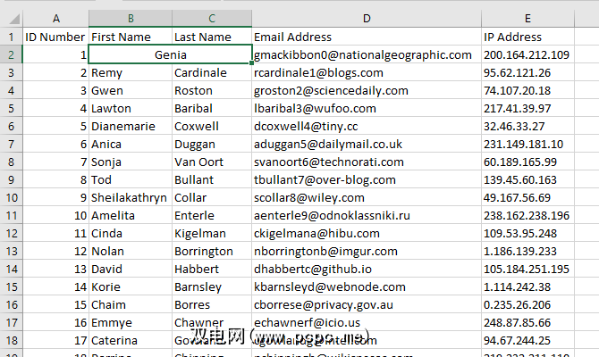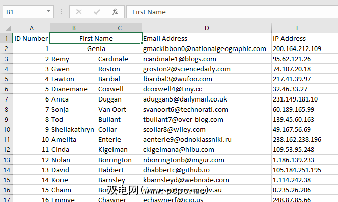 在讨论如何合并单元格之前,让我们先讨论一下在Excel中进行合并时会发生什么。在此示例中,我们将查看两列,一列表示姓氏,一列表示姓氏: