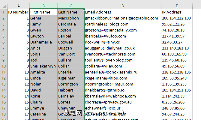 在某些情况下,您将希望合并整个列而不是几个单元格。在Excel中合并列很容易。只需选择两个列并使用相同的步骤即可。